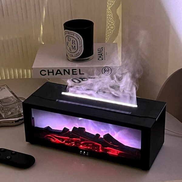 USB Colorful Flame Effect Essential Oil Diffuser with Remote Control – 3D Fireplace Simulation Humidifier for Home & Office – ChinoBazar